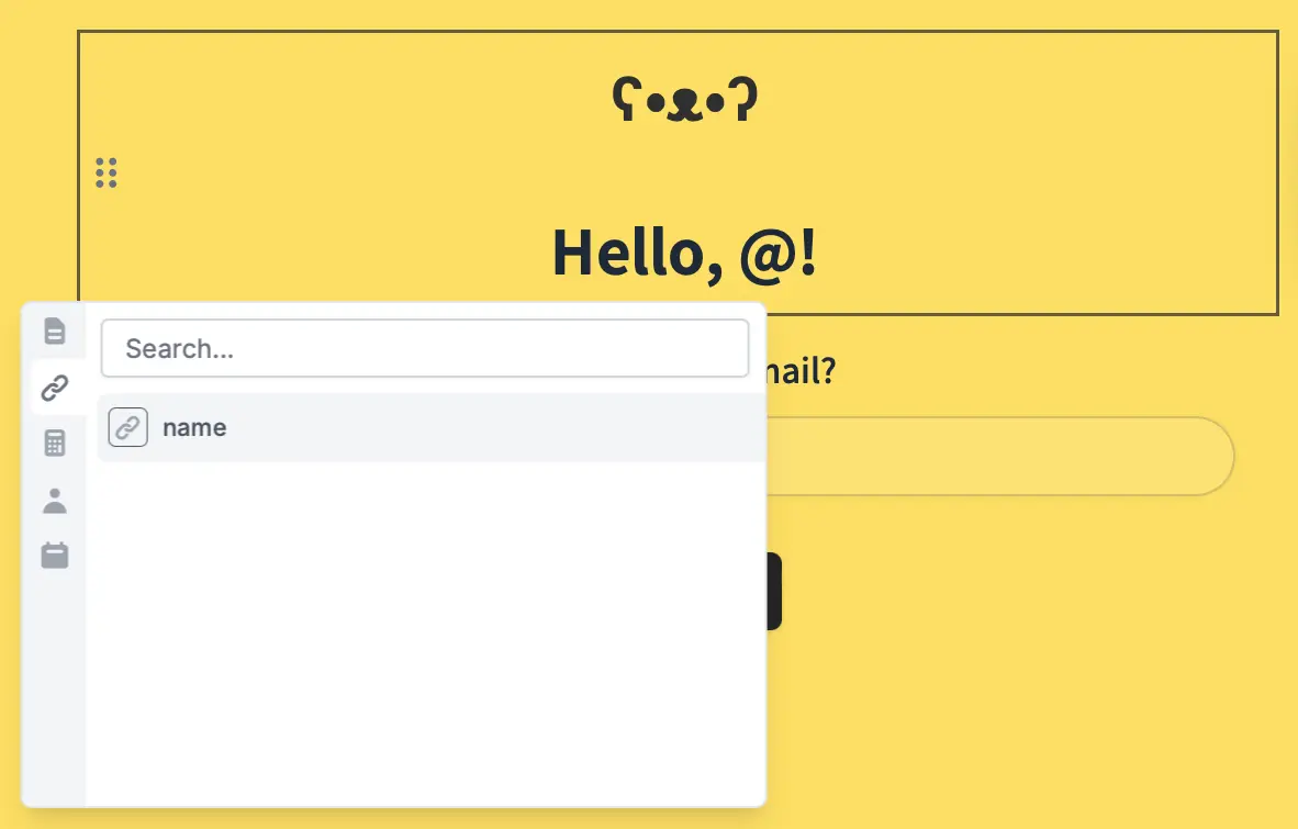• Display in plaintext in the form by typing @ and choosing your parameter.